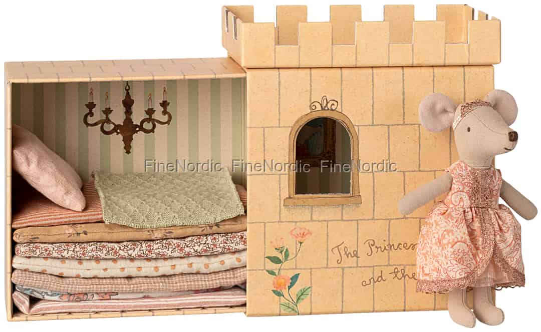 Kannst du eine winzige Erbse spüren, die unter einem hohen Stapel weicher Matratzen versteckt ist? Mit diesem bezaubernden Spielset von Maileg wird das klassische Märchen lebendig und dein kleiner Liebling kann der süßen Prinzessinnenmaus helfen, ihren gemütlichen Schlafplatz zu finden.