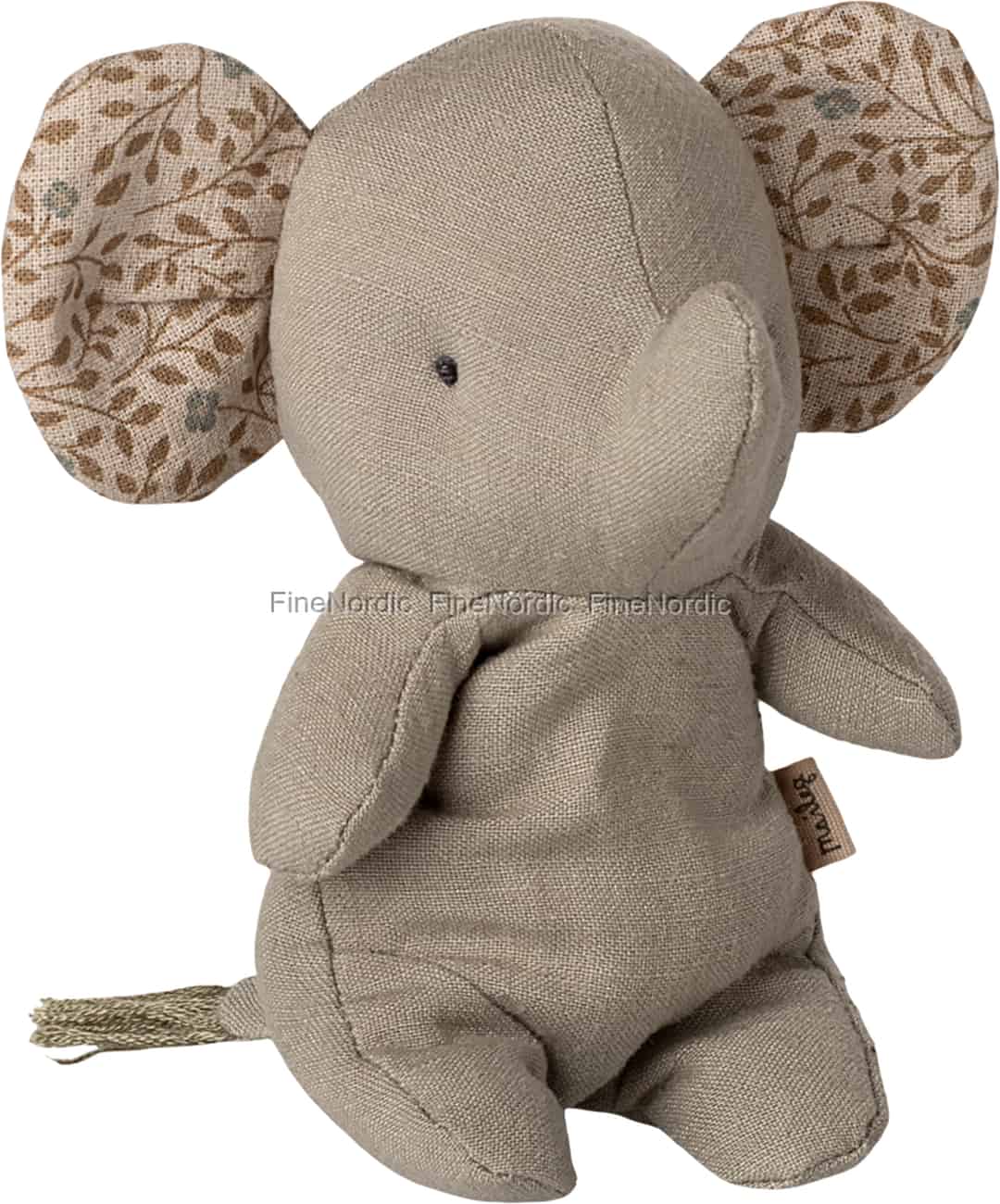 Heißen Sie mit diesem bezaubernden Miniatur-Elefanten aus der Safari Friends Kollektion von Maileg einen neuen Freund in Ihrem Zuhause willkommen. Sein sanftes Wesen spiegelt sich in seinen freundlichen, gestickten Augen und seinem weichen, eisengrauen Körper in Leinenoptik wider. Er ist ein stiller Begleiter, der nicht nur zum Spielen geschaffen wurde, sondern auch dazu, ein über Jahre hinweg geschätztes Erinnerungsstück zu sein. Seine großen Ohren, die mit einem wunderschönen botanischen Muster gefüttert sind, scheinen jedem geflüsterten Geheimnis und jeder Gutenachtgeschichte aufmerksam zu lauschen.