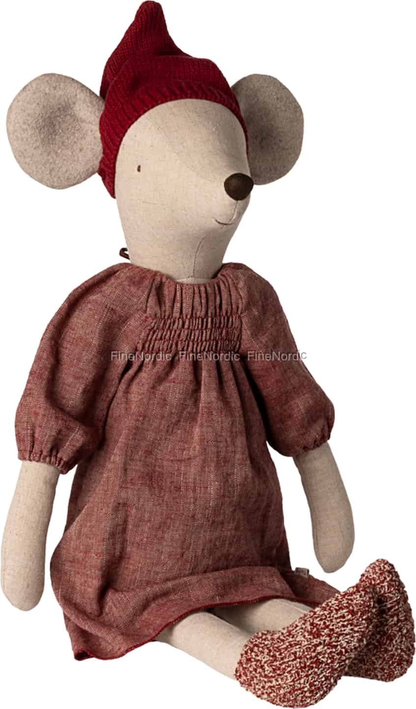 Stellen Sie sich die leise Magie eines Weihnachtsmorgens vor, an dem eine neue Freundin am Kaminfeuer wartet. Diese bezaubernde Maxi Maus von Maileg, gekleidet in ihr feinstes Festtagsgewand, ist bereit, all Ihre festlichen Geschichten mitzuerleben.
