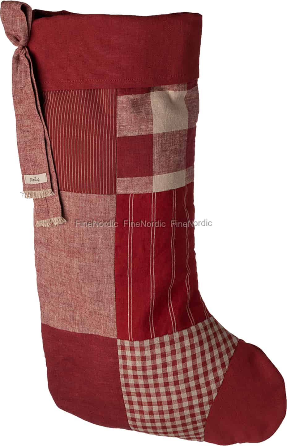Hängen Sie diesen wunderschönen Maileg-Strumpf mit Bedacht an den Kamin und schaffen Sie eine Szene voller nostalgischem Weihnachtscharme. Das wundervolle Patchwork aus rustikalen Rottönen und warmen, natürlichen Farben erzählt eine Geschichte von gemütlichen Winterabenden und geschätzten Familientraditionen. Jedes Feld, vom klassischen Vichy-Karo bis zum schlichten Streifen, ist sorgfältig aus weicher Baumwolle genäht und schafft so ein Stück, das sich sowohl neu als auch wunderbar vertraut anfühlt, als wäre es über Generationen weitergegeben worden.