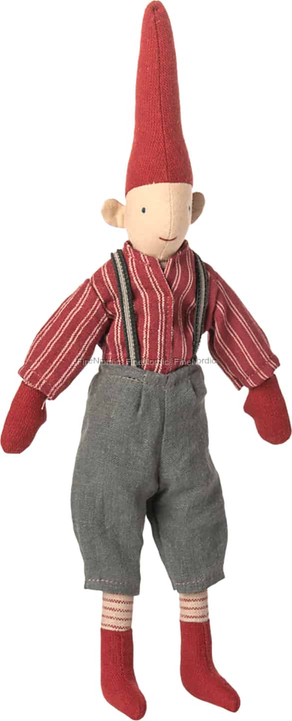 Heißen Sie in dieser festlichen Jahreszeit einen geschätzten Freund in Ihrem Zuhause willkommen. Mit seinem freundlichen Lächeln und dem schicken rot gestreiften Hemd ist dieser bezaubernde Maileg Wichtel bereit, die Magie der Weihnacht mit Ihnen zu teilen und bringt Geschichten aus der dänischen Folklore und festliche Freude mit.
