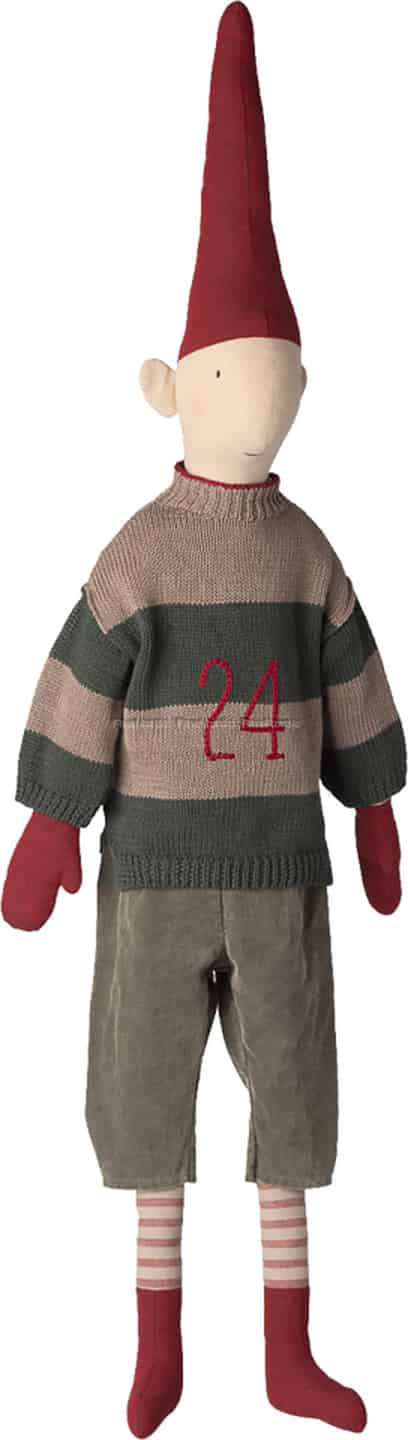 Stellen Sie sich die leise Magie des Heiligabends vor, wenn ein sanfter Wächter über Ihr Zuhause wacht. Dieser charmante Maileg Wichtel, mit seinem freundlichen Ausdruck und dem gemütlichen Pullover, bringt den herzerwärmenden Geist der traditionellen skandinavischen Weihnacht direkt zu Ihrer Familie.