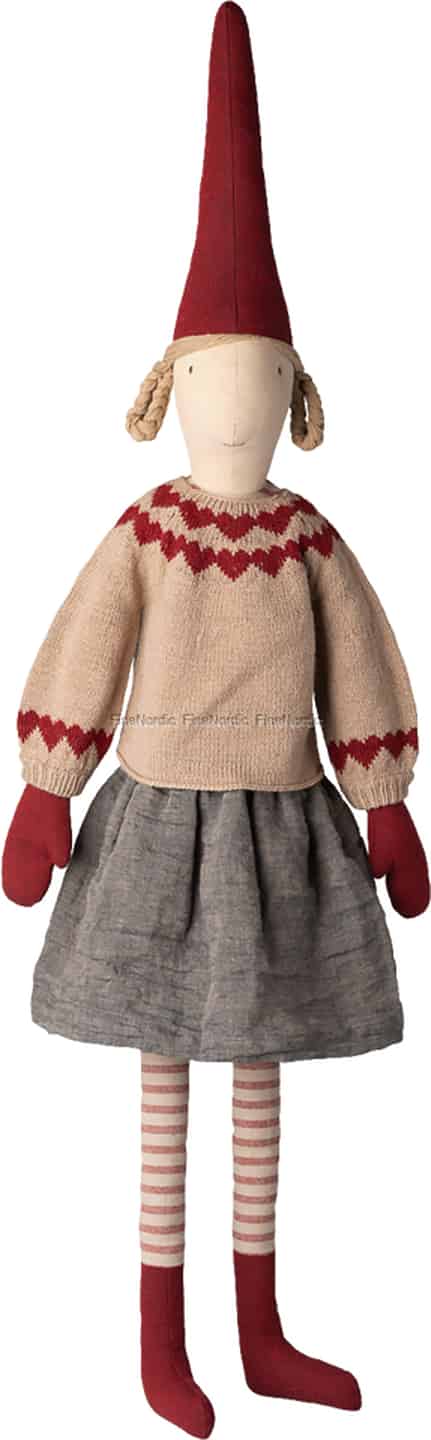 Stell dir vor, wie mit dem Nahen der Festtage eine stille Ecke deines Zuhauses mit sanftem Charme zum Leben erwacht. Dieses bezaubernde Maileg Wichtelmädchen ist mit ihrem freundlichen Lächeln und ihrer gemütlichen Winterkleidung bereit, Teil der Weihnachtsgeschichte deiner Familie zu werden.