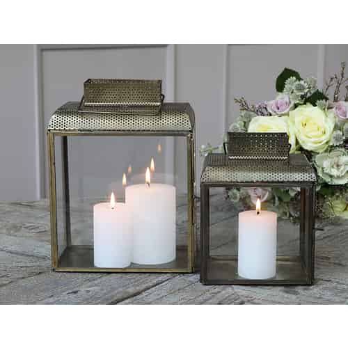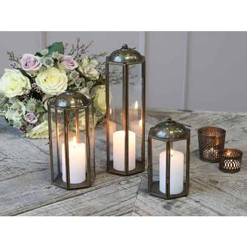 Chic Antique Windlicht mit Glas Antik Messing Groß