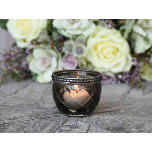 Chic Antique Teelichthalter mit Perlenrand Grau