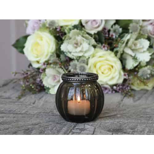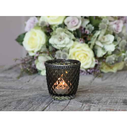 Chic Antique Teelichthalter mit Rillen und Perlenrand Dunkelgrau