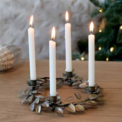 Chic Antique Kranz 4-armig mit Blättern für Spitzkerzen Antique Messing