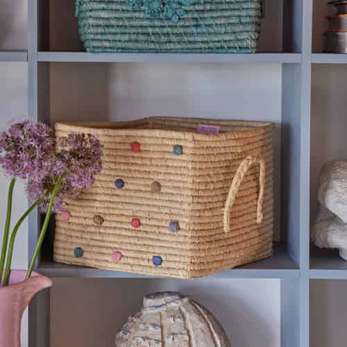Rice Raffia Korb - Quadratisch - Raffiagriffe - "A New York Minute" Punkte
