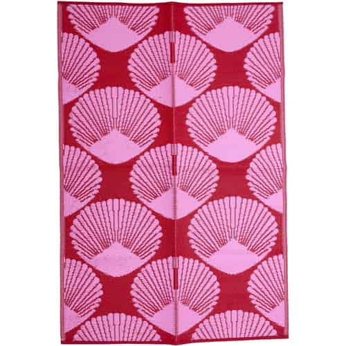 Rice Recycelter Kunststoff Teppich - Rosa und Rot - Muscheldesign 120 x 180 cm