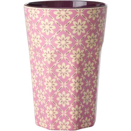 Rice Glas Kerzenhalter - Handbemalt - Rosa
