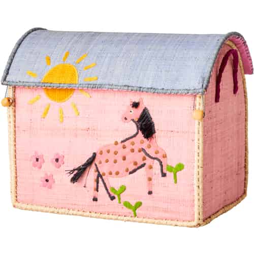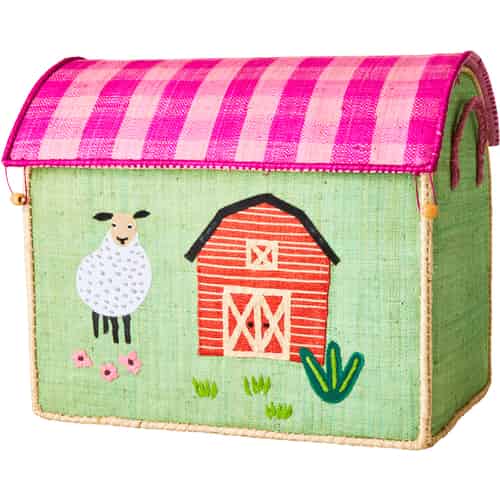 Rice Raffia Spielzeugkorb - Bauernhof Thema - Rosa - Klein