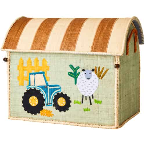 Rice Raffia Spielzeugkorb - Bauernhof Thema - Grün - Medium