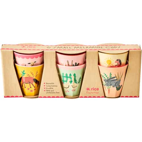 Rice Melamin Becher - Bauernhof - Rosa - Klein - 6er Set in Geschenkbox