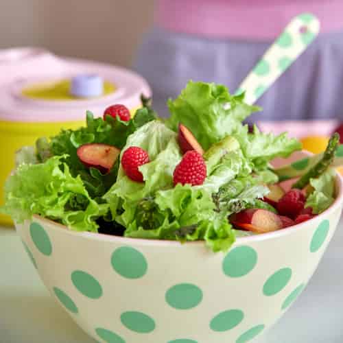 Rice Melamin Salatschüssel - Creme - Green Dots