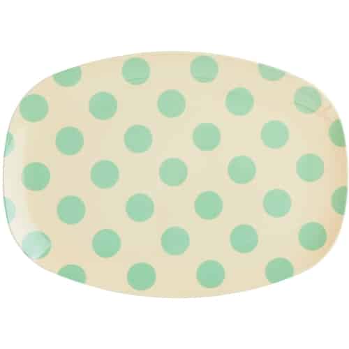 Rice Melamin Teller - Rechteckig - Creme - Green Dot