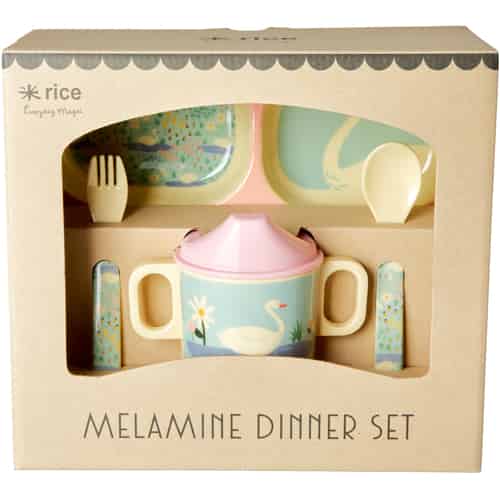 Rice Melamin Kindergeschirrset in Geschenkbox - Schwan - 4er Set