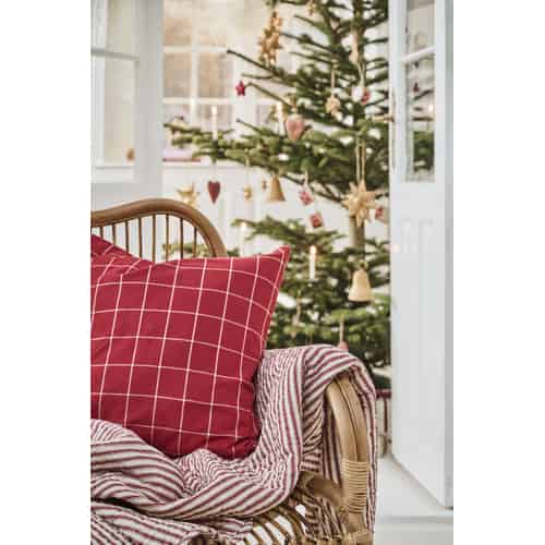 Ib Laursen Kissenhülle - "Silja" Rot mit großen naturfarbenen Karos 50 x 50 cm