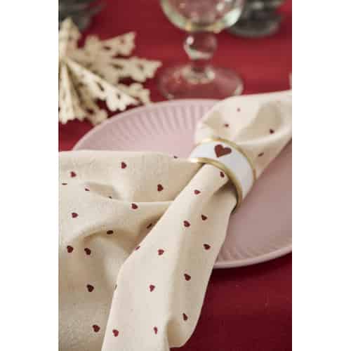 Ib Laursen Stoffserviette - "Valentin" - Natur - Rote Herzen
