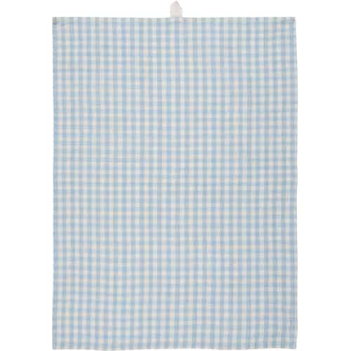 Ib Laursen Geschirrtuch Viggo Hellblau mit Kleinen Naturfarbigen Karos