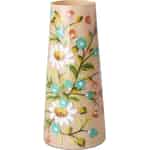 Lassen Sie den fröhlichen Geist einer Sommerwiese das ganze Jahr über in Ihrem Zuhause erblühen. Diese exquisite Glasvase von Rice ist mehr als nur ein Behälter für Blumen; sie ist eine Hommage an Farbe und Handwerkskunst. Das warme, pfirsichfarbene Glas bietet die perfekte Leinwand für die lebendigen, handgemalten Blumen, die sich um ihre Oberfläche ranken. Sie können die reizvolle Textur der erhabenen Farbe unter Ihren Fingerspitzen spüren – die klaren weißen Blütenblätter der Gänseblümchen und die bezaubernden Büschel kleiner blauer Blüten, alle verbunden durch sich windende grüne Stängel. Es ist ein Stück, das eine Geschichte von glücklichen Tagen und künstlerischer Leidenschaft erzählt.