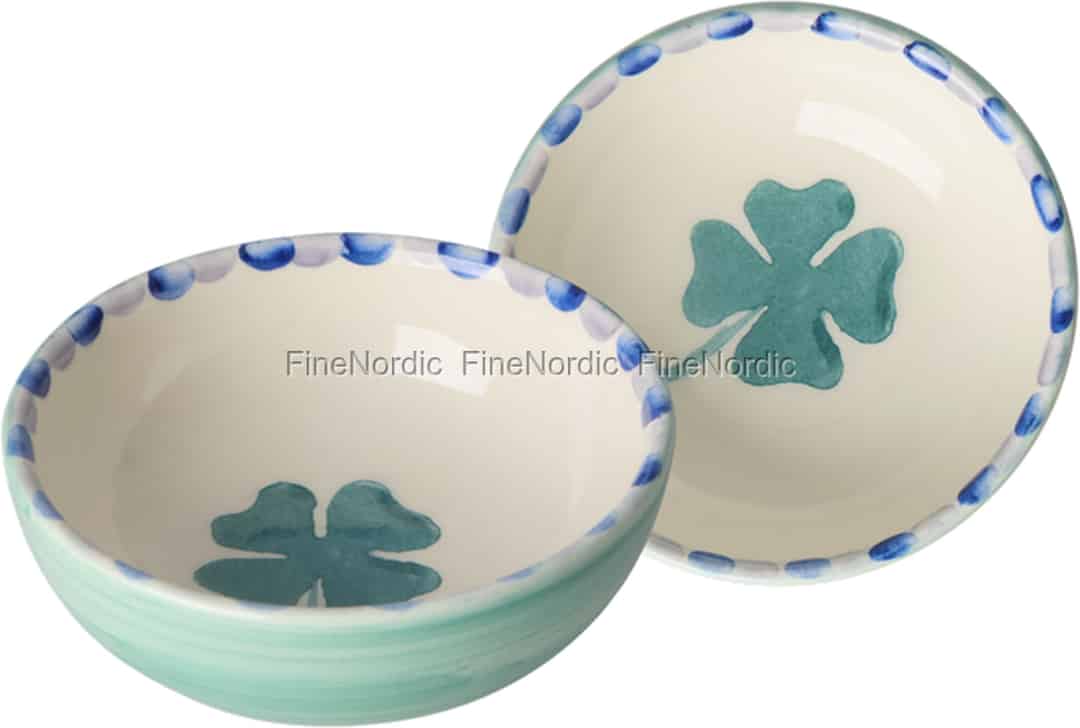 Entdecken Sie ein kleines Gefäß voller Freude mit dieser bezaubernden Dipschale von Rice. Jede Schale wird sorgfältig von Hand bemalt und verleiht Ihren alltäglichen Momenten einen einzigartigen Charakter und ein glücksbringendes Kleeblattmotiv.