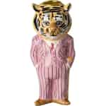 Stellen Sie sich die Geschichten vor, die dieser charmante Tiger erzählen könnte. Mit einem Funkeln in den Augen und den Pfoten lässig in den Taschen scheint er bereit für einen Abend voller anregender Gespräche. Diese wundervolle Kreation, die der fantasievollen Welt der französischen Künstlerin Nathalie Lété entsprungen ist, ist eine Hommage an das Unerwartete und Freudvolle. Die glänzende Keramik fühlt sich glatt an, während die handgemalten Details – von seiner gepunkteten Krawatte bis zu seinen schicken Schuhen – ihm eine ganz eigene Persönlichkeit verleihen.