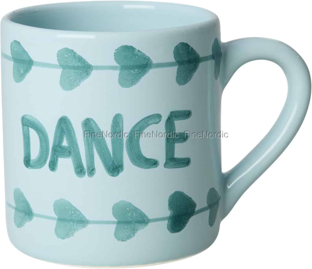 In den stillen Momenten des Morgens kann das Gefäß, das Sie für Ihr erstes Getränk wählen, den Ton für den ganzen Tag angeben. Dieser liebevolle Keramikbecher von Rice wurde genau dafür entworfen und bietet mehr als nur einen Platz für Ihren Tee. Sein heiterer hellblauer Farbton und das verspielt handgemalte Wort 'DANCE' dienen als sanfter, positiver Anstoß, Rhythmus und Glück in den kleinen Dingen zu finden. Die bezaubernden Herz-Pfeil-Details verleihen dem Design einen Hauch von skurriler Liebe und machen jeden Schluck zu etwas ganz Besonderem.