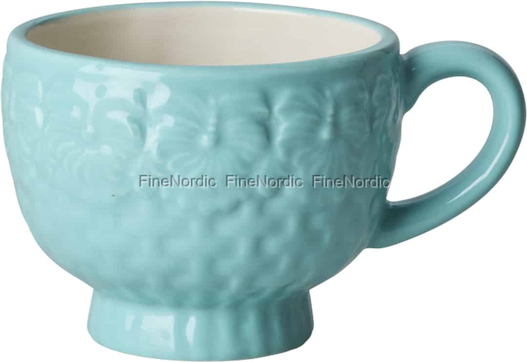 Rice Keramiktasse - Mit geprägten Blumen - Minze