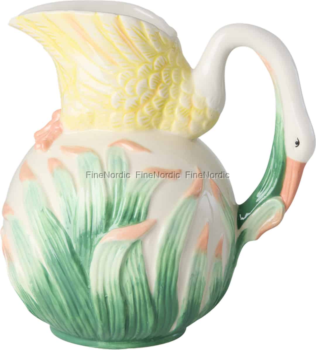 - Mit glänzendem Detail gefertigt: Aus hochwertiger Keramik mit glänzender Oberfläche gefertigt, reflektiert diese Kanne wunderschön das Licht und hebt die zarten Pastellfarben und die gemalten Schilfdetails hervor.