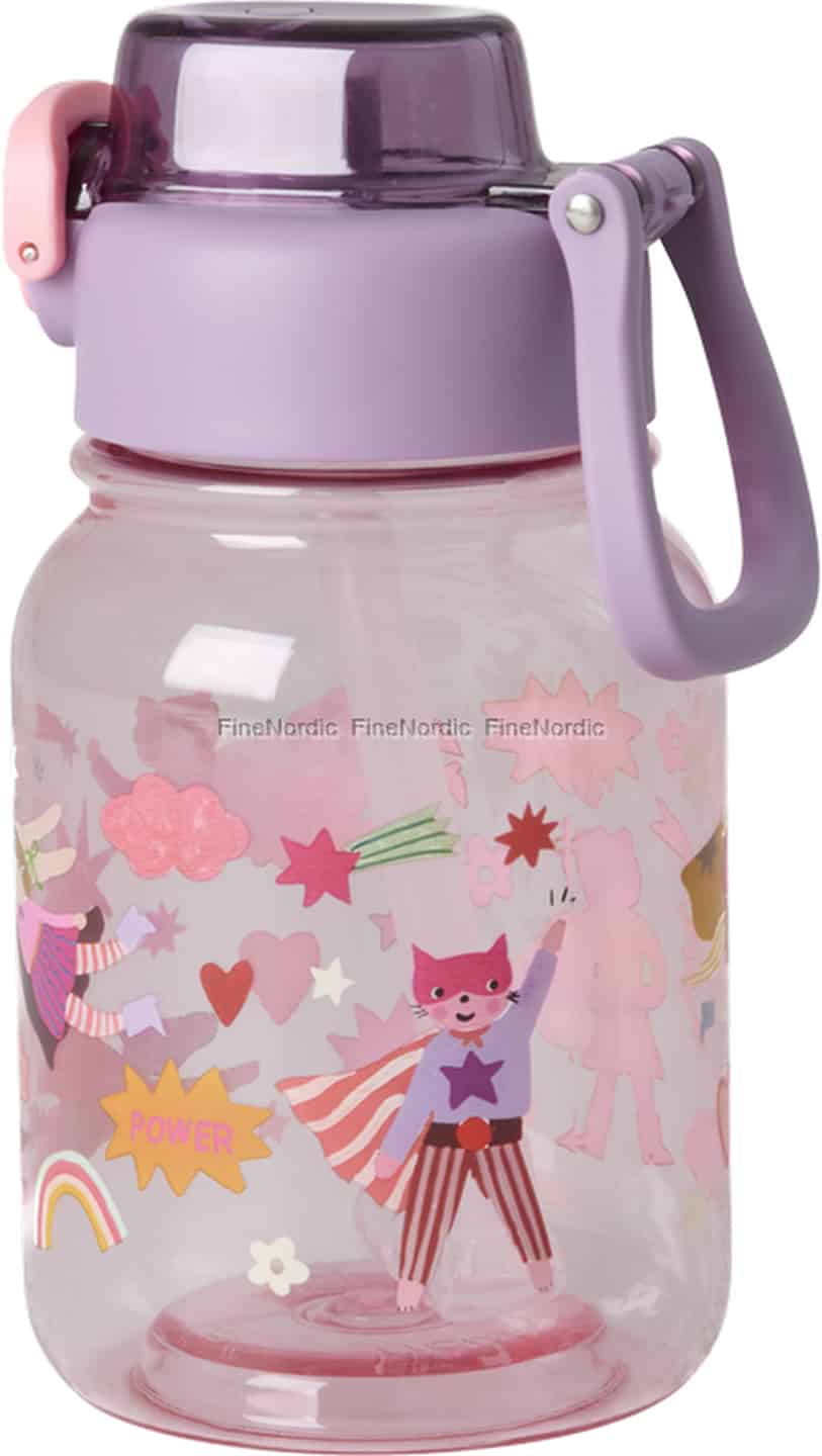 Jeder Tag birgt ein neues Abenteuer, und jeder kleine Held braucht einen treuen Begleiter. Diese wundervolle Trinkflasche von Rice ist genau dafür gemacht. Die transparente rosa Flasche ist eine Leinwand für eine Welt voller Spaß, mit einem tapferen Katzen-Superhelden, leuchtenden Regenbögen und stärkenden Sternen, die dein Kind durch jeden Moment des Tages inspirieren werden. Es ist eine wunderbare Art, das Trinken zu einem Teil des Spiels zu machen.
