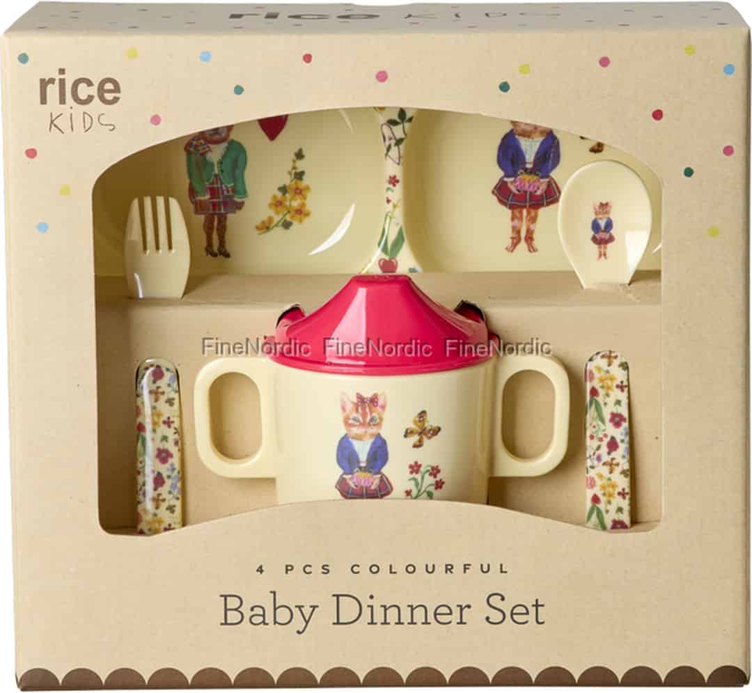 Tritt ein in die zauberhafte Welt der französischen Künstlerin Nathalie Lété, in der charmante Charaktere und leuchtende Pflanzen zum Leben erwachen. Dieses entzückende Geschirrset von Rice bringt ihre einzigartige, märchenhafte Ästhetik auf den Tisch deines Kindes. Elegante Katzen in Westen und Hasen in geblümten Kleidern laden deinen kleinen Schatz zum Essen in einem magischen Wald ein und machen jeden Löffel zu einem Abenteuer. Der unterteilte Teller hilft dabei, verschiedene Geschmäcker wunderbar getrennt zu halten, während das passende Besteck und der Trinkbecher die zauberhafte Szene vervollständigen.