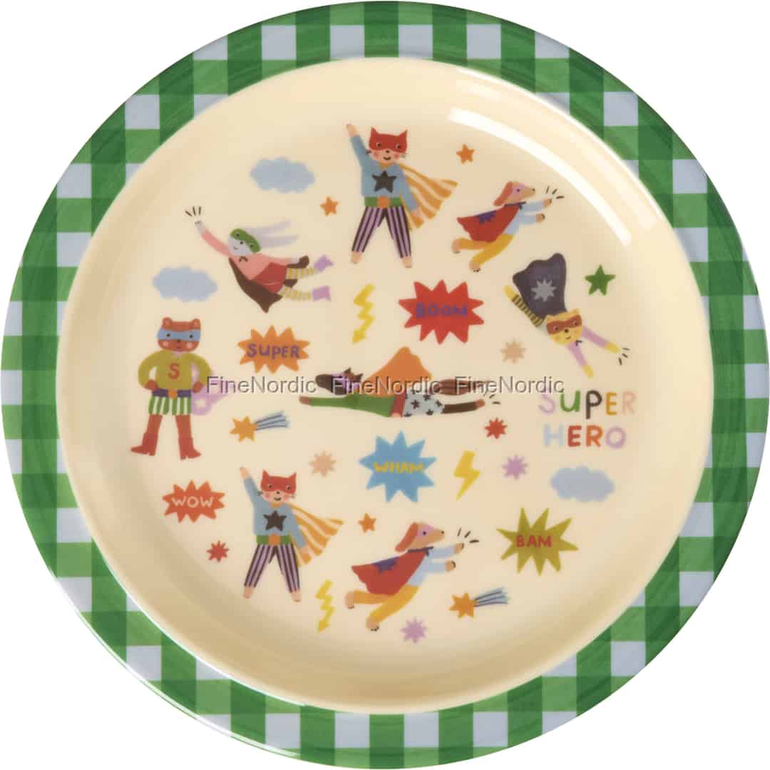 Erleben Sie, wie die Fantasie Ihres kleinen Lieblings mit jedem Bissen beflügelt wird. Dieser entzückende Teller von Rice verwandelt Frühstück, Mittag- und Abendessen in eine superstarke Geschichte, in der charmante Tierhelden den Tag retten.