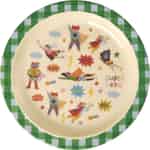 Mit seinem klassischen grün-karierten Rand und der heiteren cremefarbenen Mitte bringt dieser Teller von Rice einen Hauch von nostalgischem Charme in Ihre Küche. Doch schauen Sie genauer hin, und eine ganze Welt voller Abenteuer entfaltet sich! Ein ganzes Team von Tier-Superhelden – von einer Katze mit Umhang bis zu einem fliegenden Hund – schwebt über die Oberfläche, bereit, Geschichten von Mut und Spaß zu inspirieren. Die verspielten 'BOOM!'- und 'WHAM!'-Grafiken verleihen dem Ganzen eine entzückende Comic-Energie, die Ihr Kind bei jeder Mahlzeit zum Lächeln bringt und wählerische Esser in begeisterte Teilnehmer verwandelt.