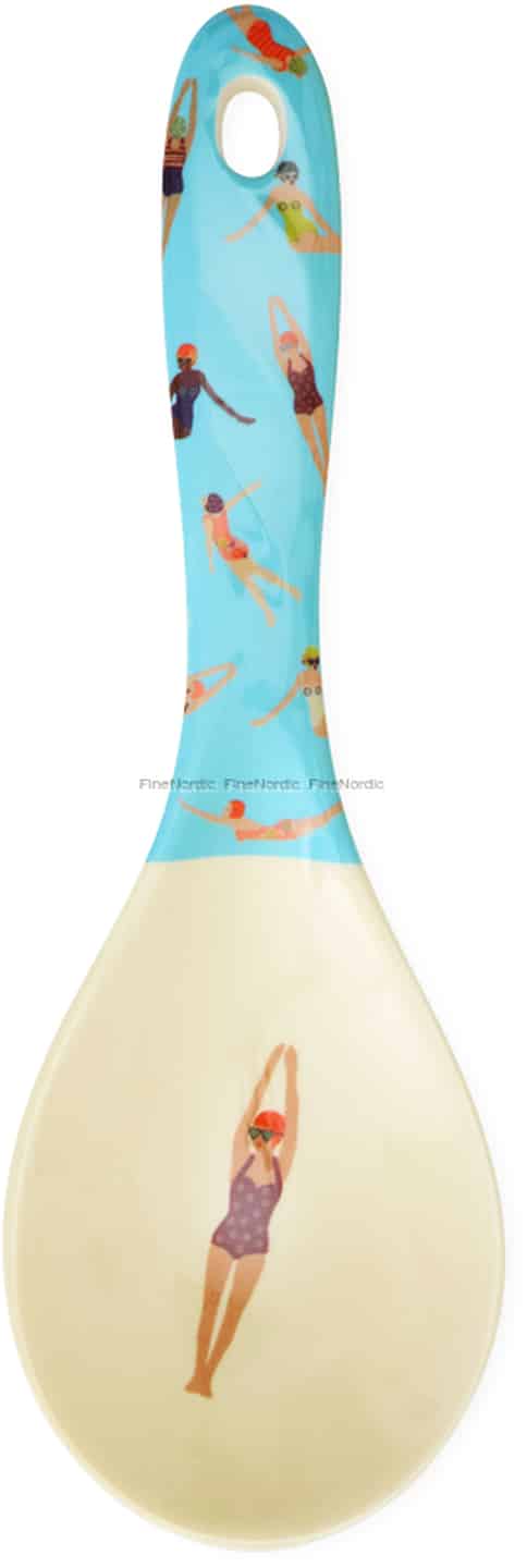 Erinnern Sie sich an die Freude eines perfekten Sommertages? Dieser bezaubernde Salatlöffel von Rice fängt genau dieses Gefühl ein, mit seinen verspielten Illustrationen von Retro-Schwimmern, die durch kühles, türkisfarbenes Wasser gleiten. Ein Stück, das entworfen wurde, um Ihnen ein Lächeln ins Gesicht zu zaubern und einen Hauch verspielter Nostalgie auf Ihren Tisch zu bringen.