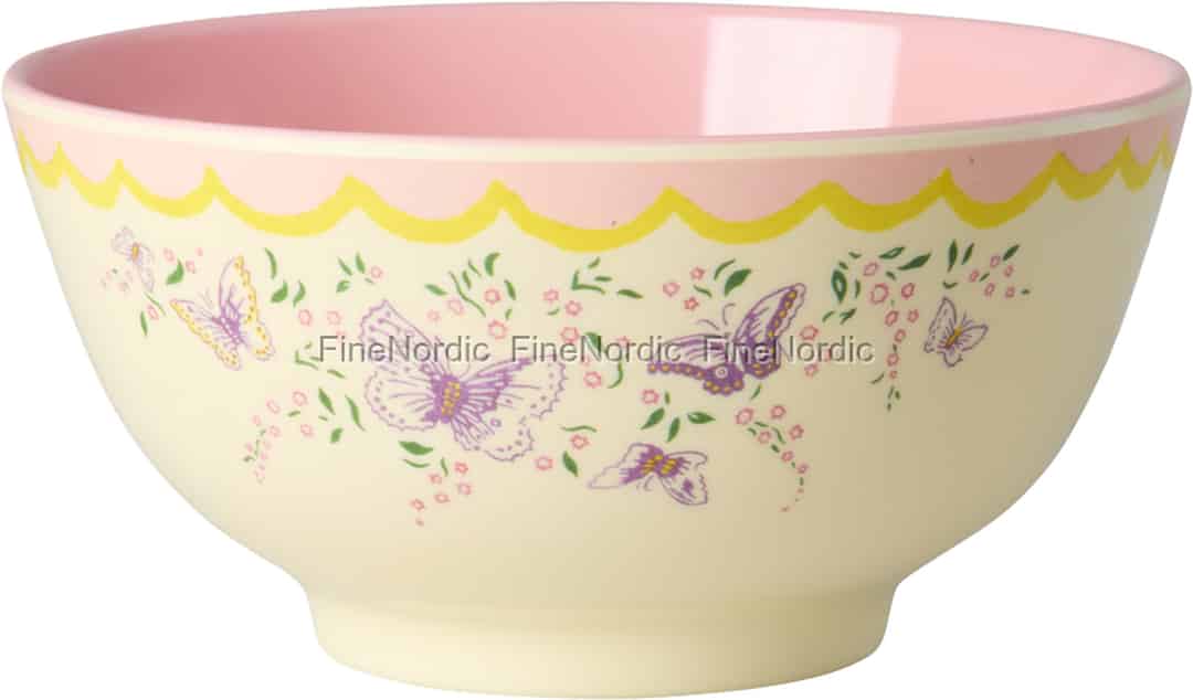 Stellen Sie sich eine sanfte Sommerbrise vor, die Schmetterlinge durch ein Feld voller Wildblumen trägt. Diese bezaubernde Melaminschüssel von Rice fängt genau diesen Moment ein und bringt einen Farbtupfer und fröhliche Energie in Ihre täglichen Mahlzeiten.