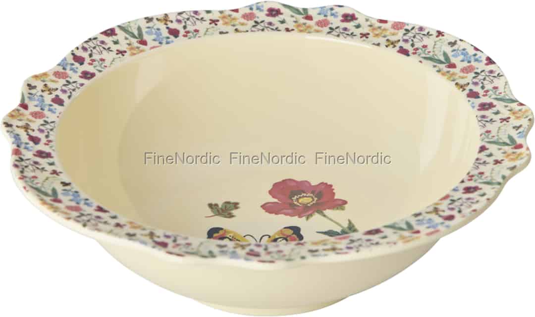 Lassen Sie jede Mahlzeit zu einem Spaziergang durch einen sonnenverwöhnten französischen Garten werden. Diese bezaubernde Schale ist Teil einer besonderen Zusammenarbeit zwischen Rice und der gefeierten Künstlerin Nathalie Lété, deren Werke für ihren farbenfrohen und poetischen Stil bekannt sind. Das cremefarbene Melamin bildet eine sanfte Leinwand für die Geschichte, die sich im Inneren entfaltet: eine leuchtende Mohnblume und ein zarter Schmetterling, die darauf warten, am Boden Ihres Tellers entdeckt zu werden. Der breite, gewellte Rand ist ein Meisterwerk für sich, verziert mit einem Teppich aus winzigen Wildblumen, der Erinnerungen an Picknicks auf dem Land und warme Nachmittage weckt.
