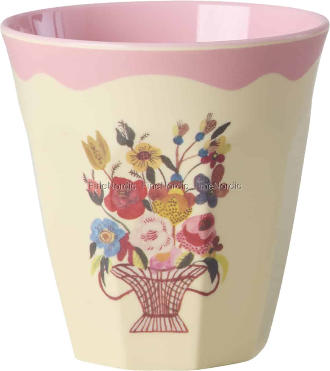 Dies ist mehr als nur ein Becher; es ist eine Leinwand für die zauberhafte Welt von Nathalie Lété. Die Pariser Künstlerin, bekannt für ihre farbenfrohen und poetischen Kreationen, bringt ihren charakteristischen Folk-Art-Stil in diese wundervolle Zusammenarbeit mit Rice ein. Die detaillierte Illustration eines lebendigen Blumenstraußes in einem charmanten Korb vor einem sanft cremefarbenen Hintergrund weckt ein Gefühl von Nostalgie und fröhlichem Optimismus in Ihrem Zuhause. Das zartrosa Innere und der gewellte Rand sorgen für einen letzten, verspielten Akzent.