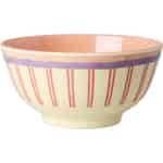 Stellen Sie sich Ihren Tisch vor, lebendig vor Farbe und Lachen. Diese entzückende Melaminschale von Rice, mit ihren verspielten Streifen und dem warmen pfirsichfarbenen Inneren, wurde entworfen, um einen Hauch von Freude in Ihren Alltag zu bringen – vom morgendlichen Müsli bis zum Mittagessen im Garten.