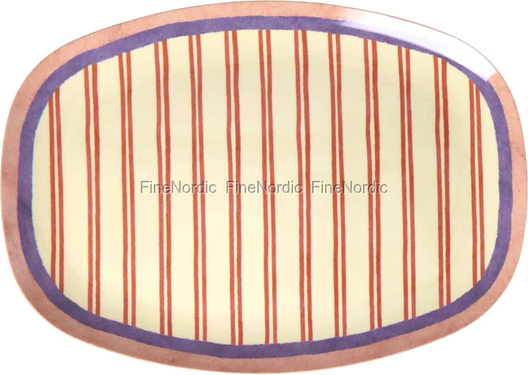 - Eine leinwand voller fröhlicher farben: Die verspielten roten Streifen, umrahmt von einem bezaubernden Rand in Lila und Rosa, verleihen diesem Teller einen einzigartigen, künstlerischen Charakter. Seine großzügige Größe von 30 x 22 cm ist ideal, um alles von Sandwiches bis zu frischen Salaten zu servieren.