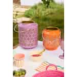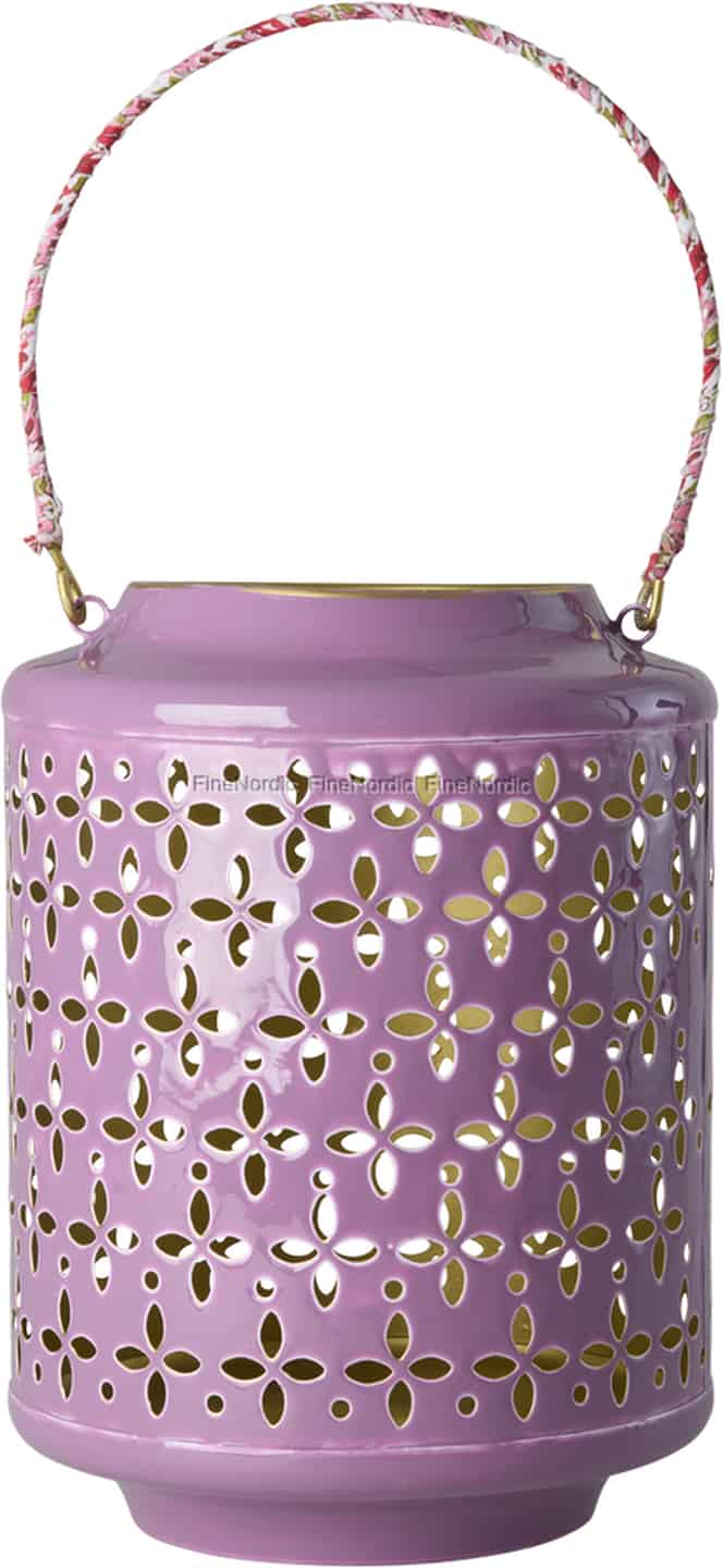 Rice Metalllaterne - Blumenmuster - Griff mit Stoff umwickelt - Lavendel