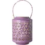 Bringen Sie den fröhlichen und lebendigen Geist von Rice mit dieser exquisiten Metalllaterne in Ihr Zuhause und Ihren Garten. Die glänzende lavendelfarbene Lackierung sorgt für einen heiteren Farbtupfer, während die filigranen Blumenausstanzungen einen zarten, spitzenartigen Effekt erzeugen. Im Inneren wartet eine goldene Oberfläche darauf, den warmen Schein einer Kerze zu verstärken und einfaches Kerzenlicht in ein fesselndes Schauspiel zu verwandeln. Es ist ein Stück, das sich sowohl verspielt als auch elegant anfühlt und dafür geschaffen wurde, alltägliche Momente ein wenig magischer zu gestalten.