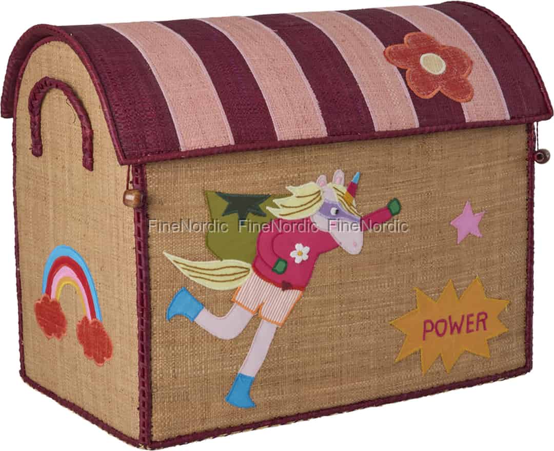 Aufräumen wird zu einem magischen Abenteuer mit diesem wundervollen Aufbewahrungshaus von Rice. Handgefertigt aus natürlichem Raffia, stehen seine verspielten Details und das Superhelden-Einhorn bereit, die liebsten Spielsachen und Schätze deines kleinen Lieblings zu bewachen.