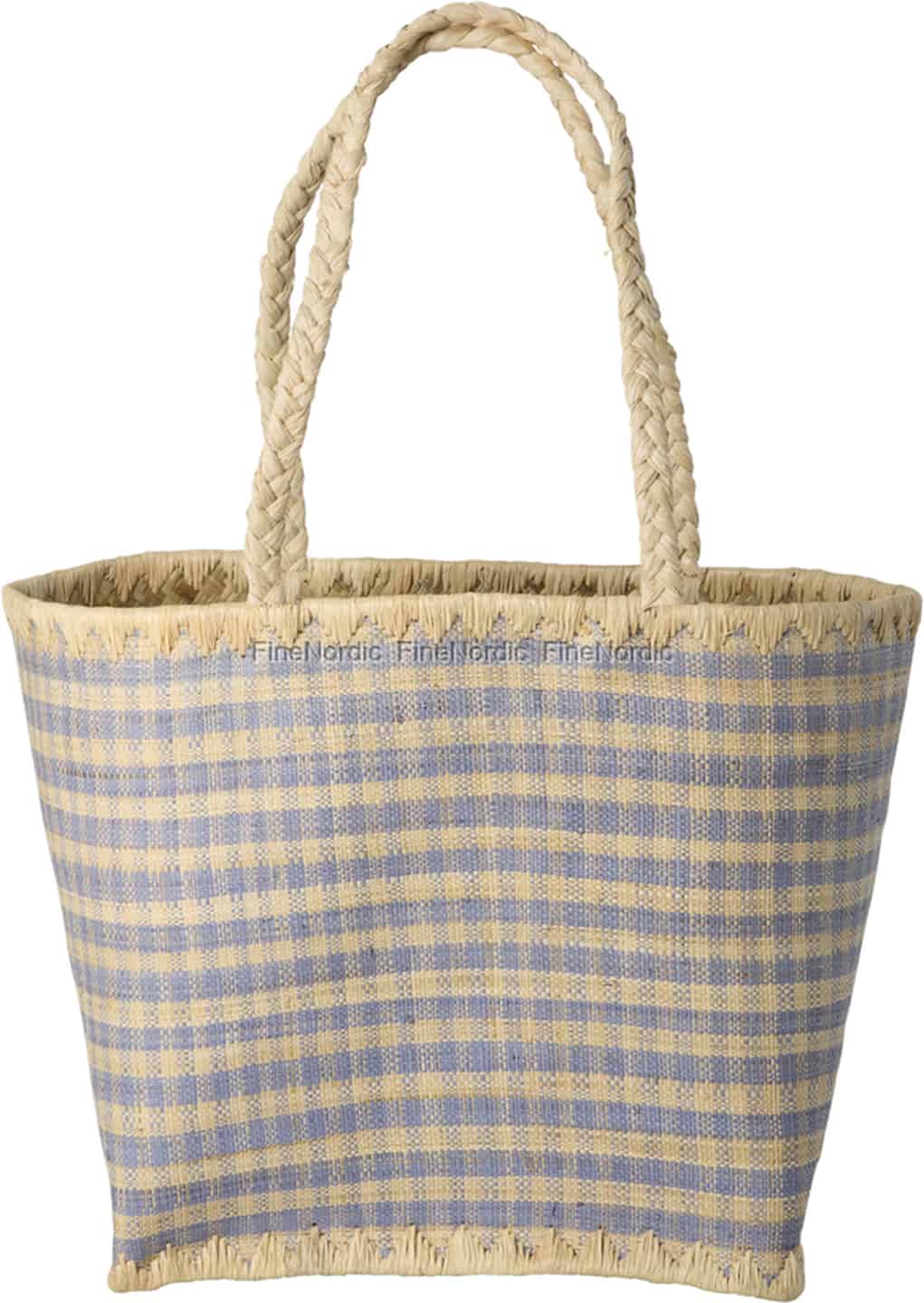 Aus der farbenfrohen Welt von Rice kommt eine Tasche, die die pure Freude eines perfekten Sommertages einfängt. Handgefertigt aus natürlichem Raffia, erinnert ihr sanftes, blau-beiges Karomuster an Picknicks am Meer und gemütliche Spaziergänge über den Wochenmarkt. Die robusten, geflochtenen Griffe liegen angenehm in der Hand oder über der Schulter, während der verspielte Fransenbesatz einen letzten Hauch von handwerklichem Charakter verleiht. Es ist ein Stück, das eine Geschichte von Sorgfalt, Handwerkskunst und der Liebe zu den einfachen Freuden des Lebens erzählt.