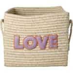 Dieser Korb ist mehr als nur ein Ort, um Ordnung zu halten – er ist eine tägliche Dosis Glück. Die fröhliche lila-orange 'LOVE'-Stickerei dient als sanfter Anstoß, Ihr Zuhause mit Dingen zu füllen, die Ihnen Freude bereiten. Stellen Sie ihn sich im Spielzimmer eines Kindes vor, wo er die Lieblingsspielzeuge sicher aufbewahrt, oder neben Ihrem Lieblingssessel, gefüllt mit weichen Decken für einen ruhigen Abend. Er ist ein funktionales Kunstwerk, das Ihnen hilft, einen Raum zu schaffen, der sich organisiert, persönlich und voller Liebe anfühlt.