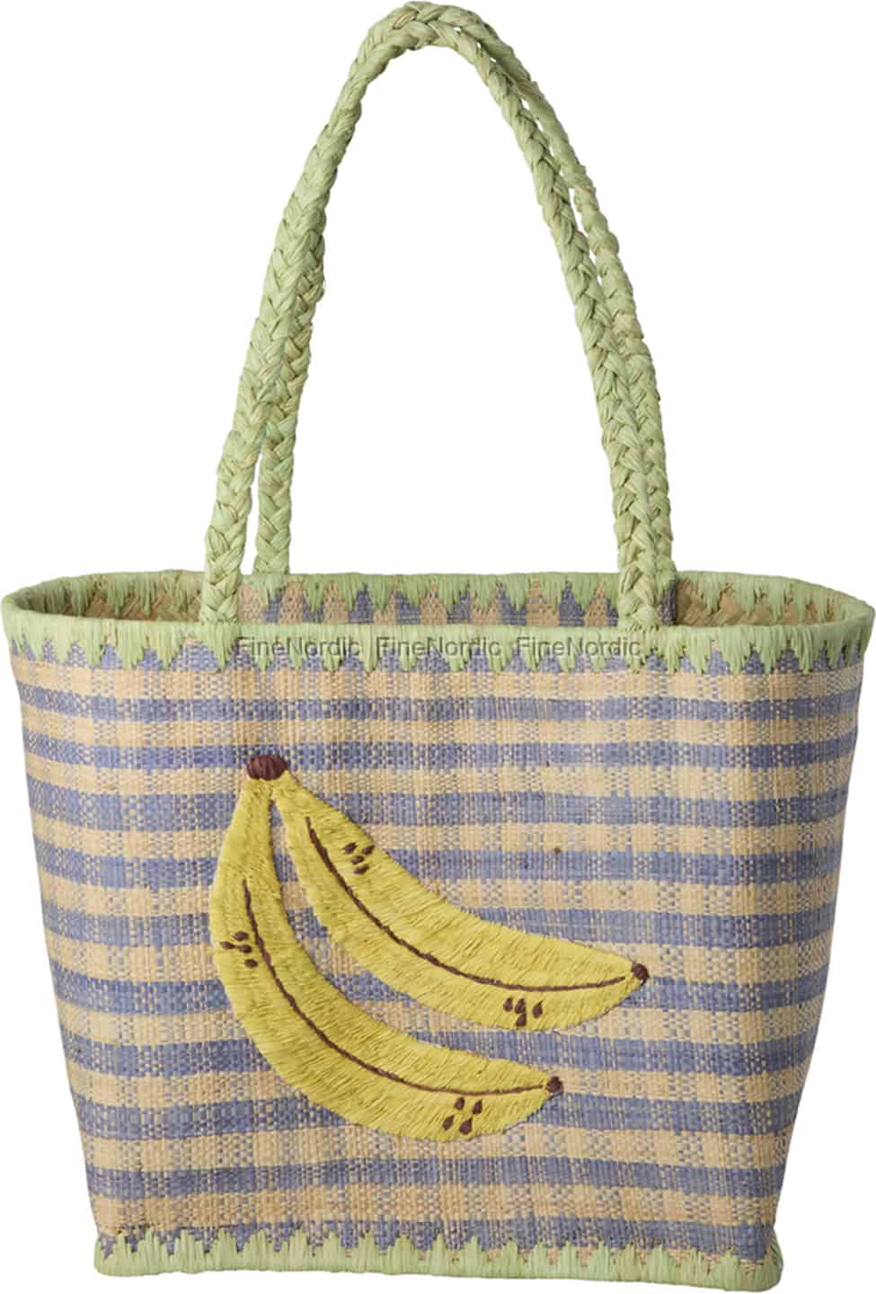 Stellen Sie sich vor, wie Sie über den Wochenmarkt schlendern, Ihren neuen Lieblingsbegleiter in der Hand. Diese entzückende Raffiatasche von Rice bringt mit ihrem fröhlichen Muster und der charmanten Bananenstickerei einen Hauch von verspieltem Sonnenschein in Ihren Tag.