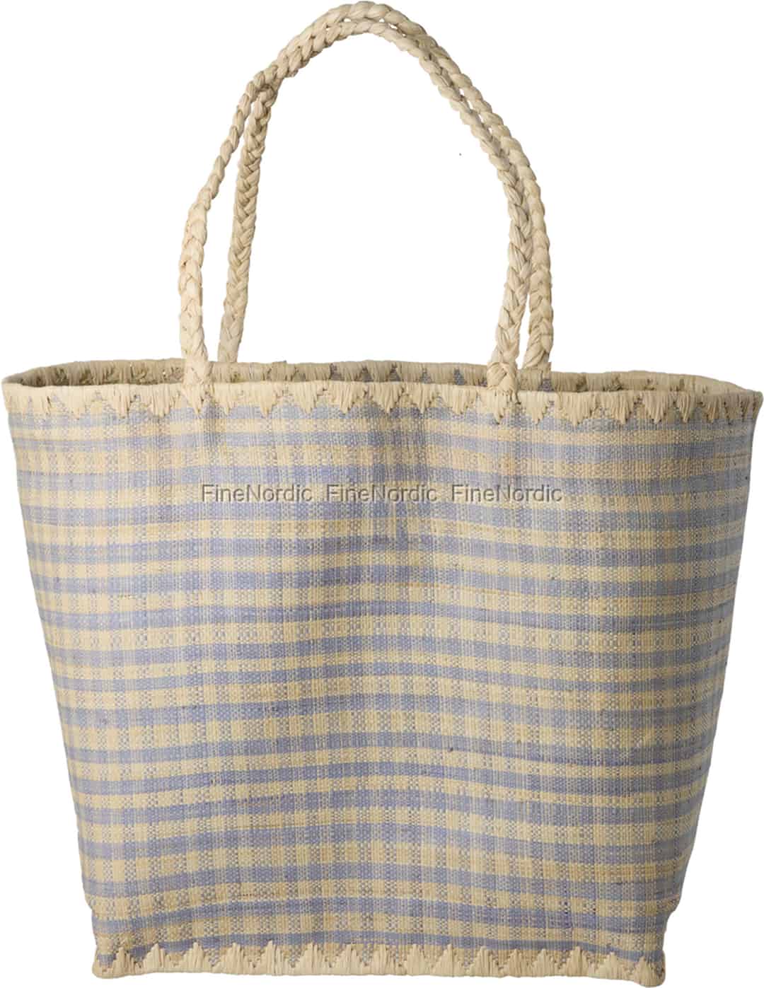 Von der dänischen Marke Rice, die dafür bekannt ist, Freude in den Alltag zu bringen, kommt eine Tasche, die die Essenz eines unbeschwerten Sommers einfängt. Jede Tasche wird sorgfältig aus natürlichem Raffia geflochten, einem Material, das für seine leichte Stärke und seine wunderschöne, erdige Textur geschätzt wird. Sie werden die durchdachten Details zu schätzen wissen, von den stabilen, geflochtenen Griffen, die bequem auf Ihrer Schulter liegen, bis hin zu den bezaubernden dekorativen Fransen, die den oberen und unteren Rand zieren. Das sanfte Karomuster in Blau und Beige ist ein zeitloser Klassiker, der Erinnerungen an Picknicks am Meer und sonnige Nachmittage beim Stöbern auf lokalen Märkten weckt.