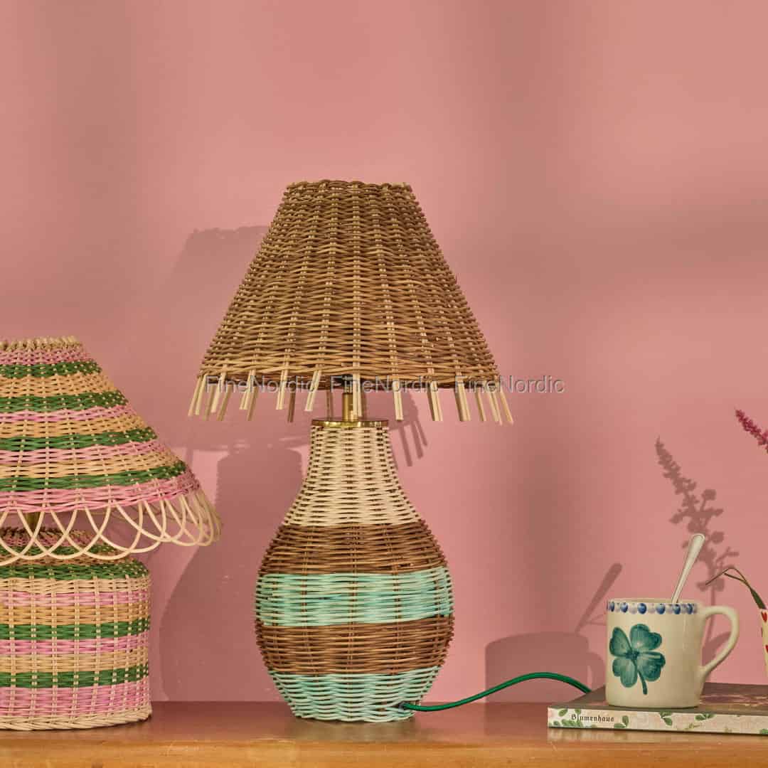Holen Sie sich mit dieser wunderschönen Tischleuchte von Rice einen Hauch von verspieltem Charme in Ihr Zuhause. Ihr handgeflochtener Bastfuß besticht durch entzückende Farbstreifen und macht sie zu einem Kunstwerk, das zugleich eine Quelle für warmes, einladendes Licht ist.
