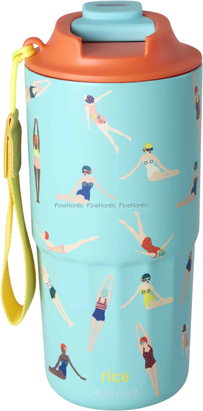 Verleihen Sie Ihrem Tag einen Hauch verspielter Nostalgie am Beckenrand. Dieser bezaubernde Thermobecher von Rice mit seinem entzückenden Retro-Schwimmerinnen-Aufdruck wurde entworfen, um Ihre Lieblingsgetränke auf der perfekten Temperatur zu halten, ganz gleich, wohin Ihre Abenteuer Sie führen.