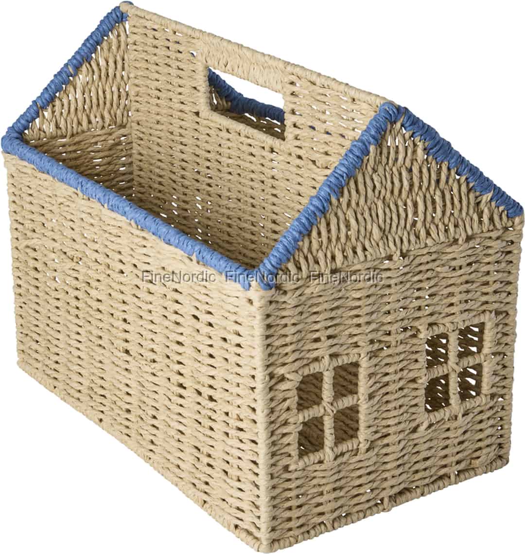 Rice Zeitschriftenhalter aus Papierschnur - Hausform - Blaue Details