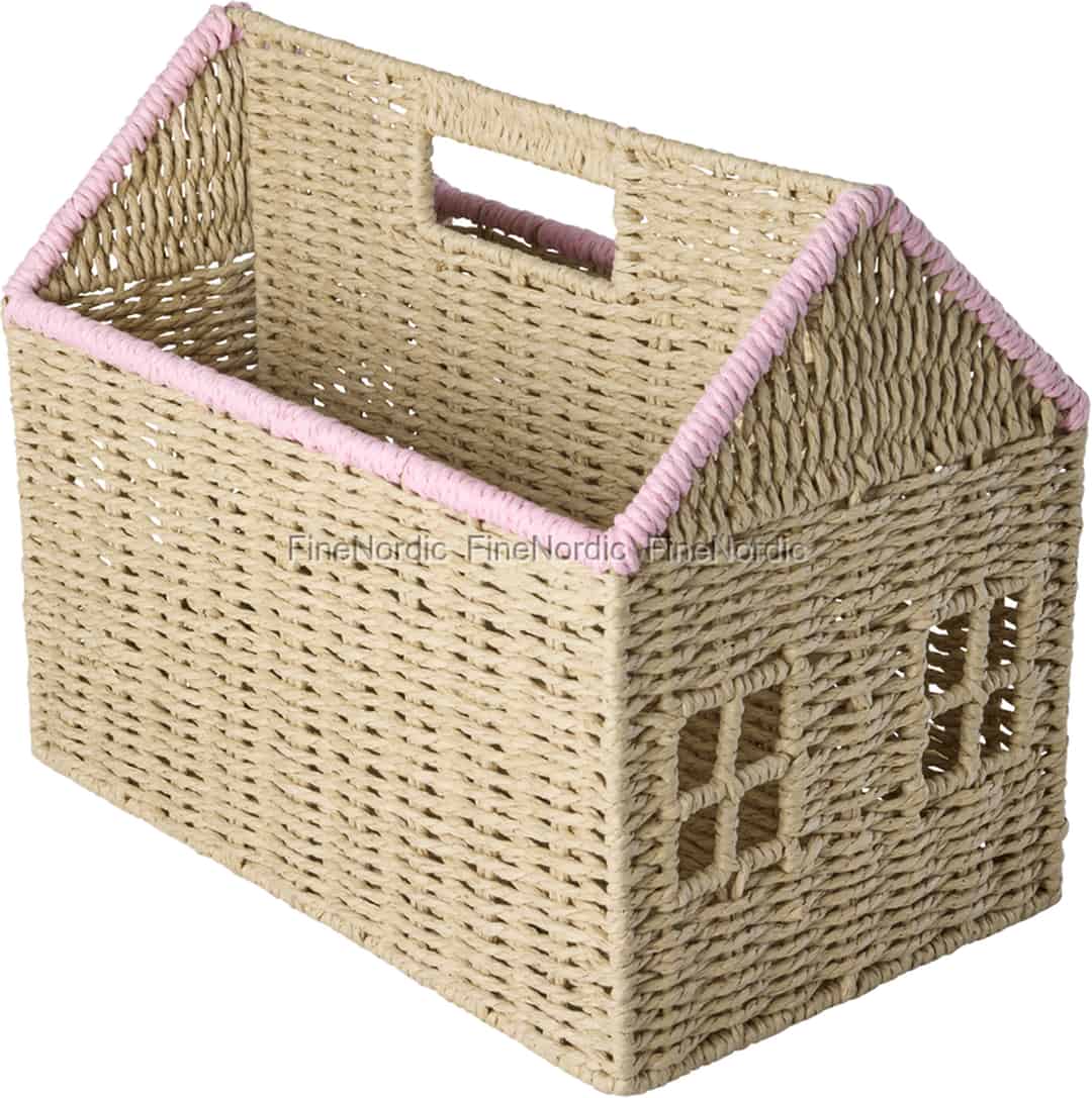 Rice Zeitschriftenhalter aus Papierschnur - Hausform - Rosa Details